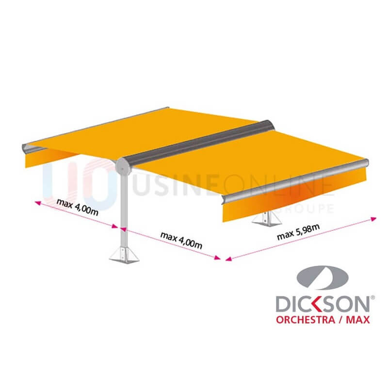 - Toile DICKSON ORCHESTRA MAX : Tissu imperméable à la pluie. Approprié aux stores ouverts en permanence. Fibre acrylique teint masse. Résistance aux UV.