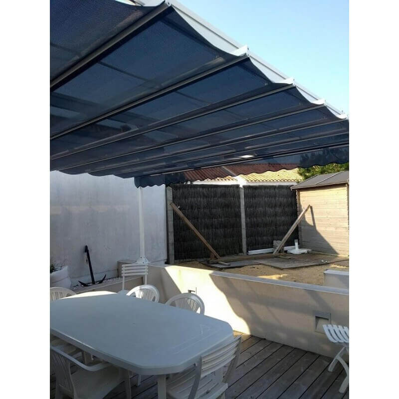 La pergola à toile rétractable Vélum micro-perforée manuelle entre murs 06 tp2 d’usine-online vous permet de profiter de votre terrasse même lorsque le vent se lève grâce à la structure rigide en aluminium extrudé. Vous ouvrez votre toile pour moduler l’ombrage désiré sur votre terrasse au fil de la journée à l'aide d'une corde et d'une poulie.