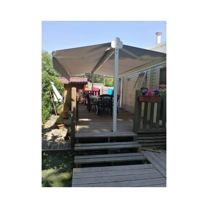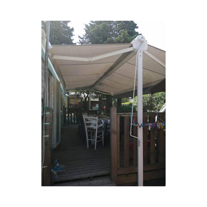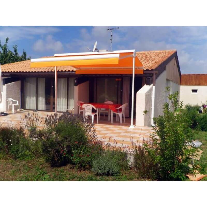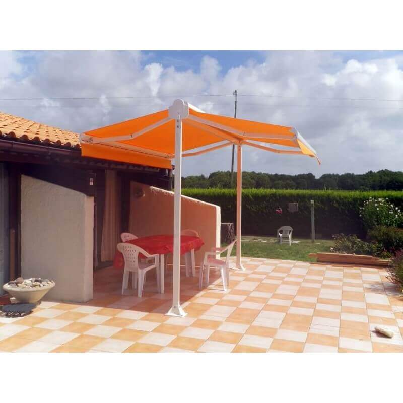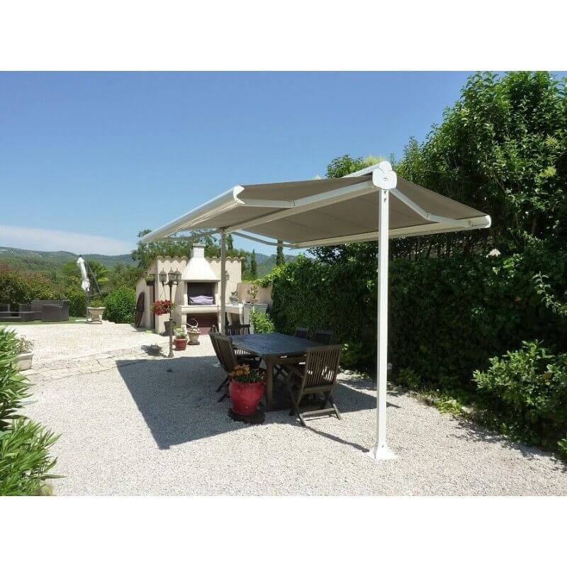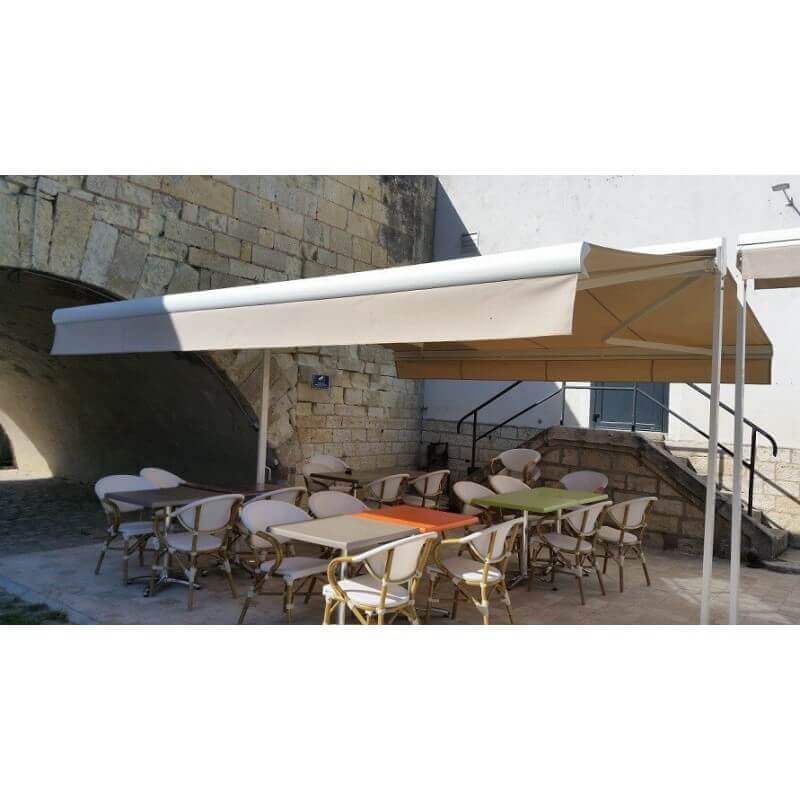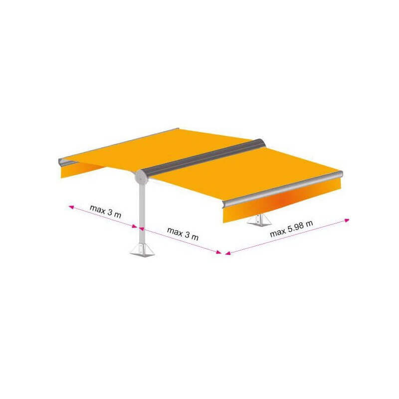 Ces articles de stores bannes à 2 pentes répondent aux exigences d’un balcon ou d'une terrasse de grande qualité, offrant un bon compromis entre prix et fonctionnalité, une banne avec pieds est idéale pour un grand salon extérieur ou y mettre au centre une table à manger avec une grande dimension en plein milieu de votre jardin à l'aide du système manuel. Nous avons une bonne note et d'excellents avis clients.