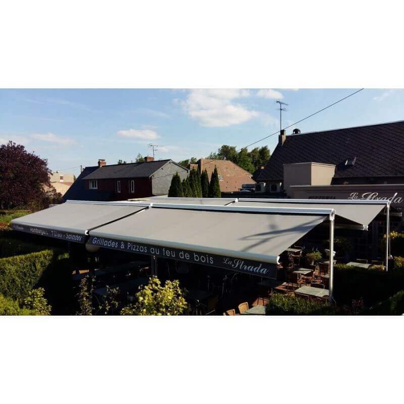 Les stores bannes double pente 265 d’Usine-Online sont conçus pour répondre aux besoins des grandes terrasses, qu’il s’agisse de particuliers ou de professionnels comme les hôtels, restaurants et brasseries. Il est disponible en plusieurs tailles, adaptées aux grands espaces extérieurs :