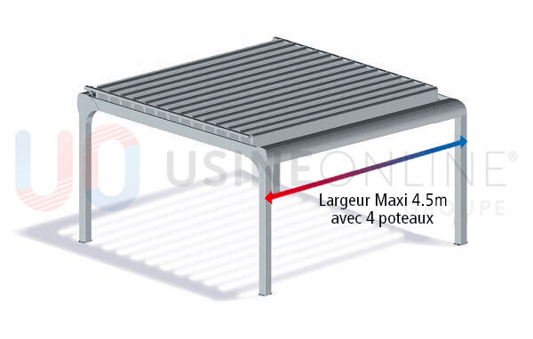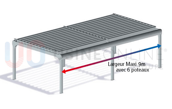 Nous recherchions une pergola bioclimatique autoportee de 6m de large sans poteau intermédiaire depuis longtemps à prix raisonnable, ce modèle est vendu en lames parallèles mais comme nous à conseillé le bureau d'études du site nous pouvons la pivoter de 1/4 lors du montage, clairement la profondeur proposée sur le configurateur de 6m devient en réalité 6m de large si on décide de l'installer avec des lames perpendiculaires à la façade,