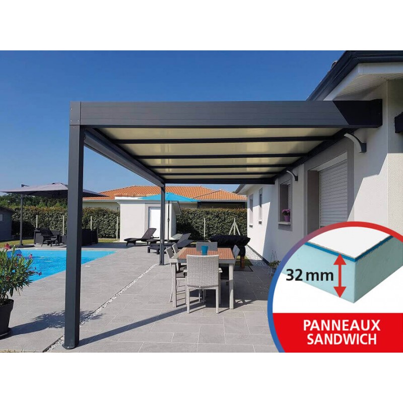 Pergola Toit Plat Panneaux Sandwich 32mm H3 Adossée Sur Mesure -