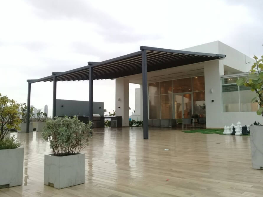 Le nettoyage de l’aluminium est tout aussi important sur votre pergola. Les brindilles, la mousse, les feuilles mortes et la poussière peuvent s’amonceler sur la pergola, ce qui bloque l’évacuation des eaux de pluie. Conservez une pergola propre pour que l’eau s’écoule correctement dans le poteau d’évacuation.