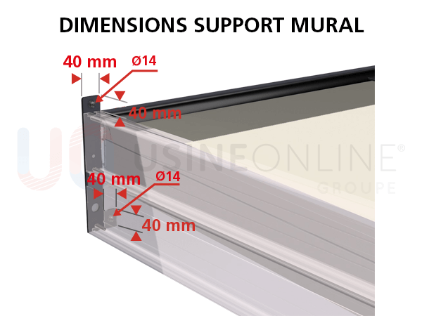 Information sur le positionnement des platines en cas d'installation de stores verticaux : les platines dépassent des poteaux de +/- 4 cm sur 2 côtés (angle), il est important d'orienter ces débordements vers l'extérieur de la structure pour que les coulisses des stores verticaux arrivent jusqu'au sol.