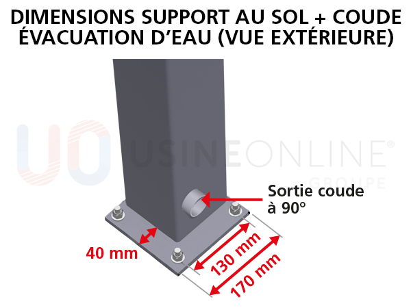Information sur le positionnement des platines en cas d'installation de stores verticaux : les platines dépassent des poteaux de +/- 4 cm sur 2 côtés (angle), il est important d'orienter ces débordements vers l'extérieur de la structure pour que les coulisses des stores verticaux arrivent jusqu'au sol.