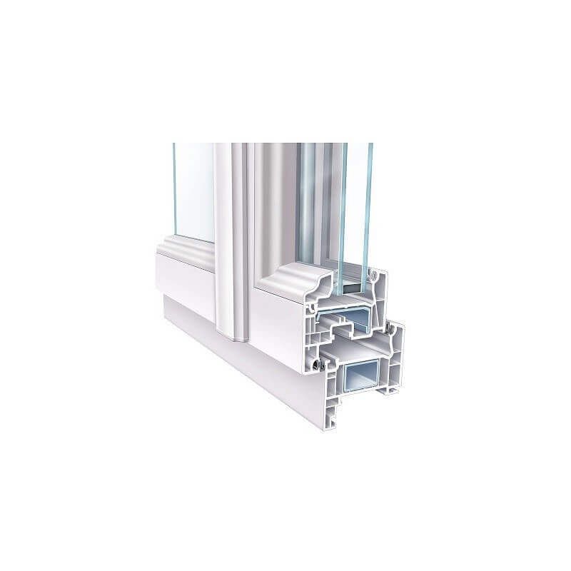 Porte-fenêtre PVC 5 chambres d’isolation en 70 mm d´épaisseur et valeur Uf = 1,4W/m²K