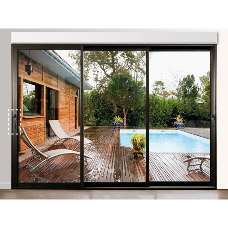 La baie coulissante 3 vantaux (ouvrant principale à gauche) avec volet roulant intégré alu PROFILS SYSTÈMES d'Usine-Online est la meilleure du marché, elle réunit un nombre important des caractéristiques d'une baie coulissante de haute qualité. La baie coulissante 3 vantaux avec volet roulant intégré PROFILS SYSTÈMES d'Usine-Online est un bon compromis entre le prix et les propriétés que doivent satisfaire aujourd'hui une baie coulissantes aluminium. Usine-Online vous propose une palette de plusieurs coloris en mono-coloration ou bicoloration (intérieur blanc) pour répondre aux tendances de décoration actuelles. La baie coulissante aluminium 3 vantaux avec volet roulant intégré PROFILS SYSTÈMES peut se configurer individuellement à un bon prix dans le configurateur.