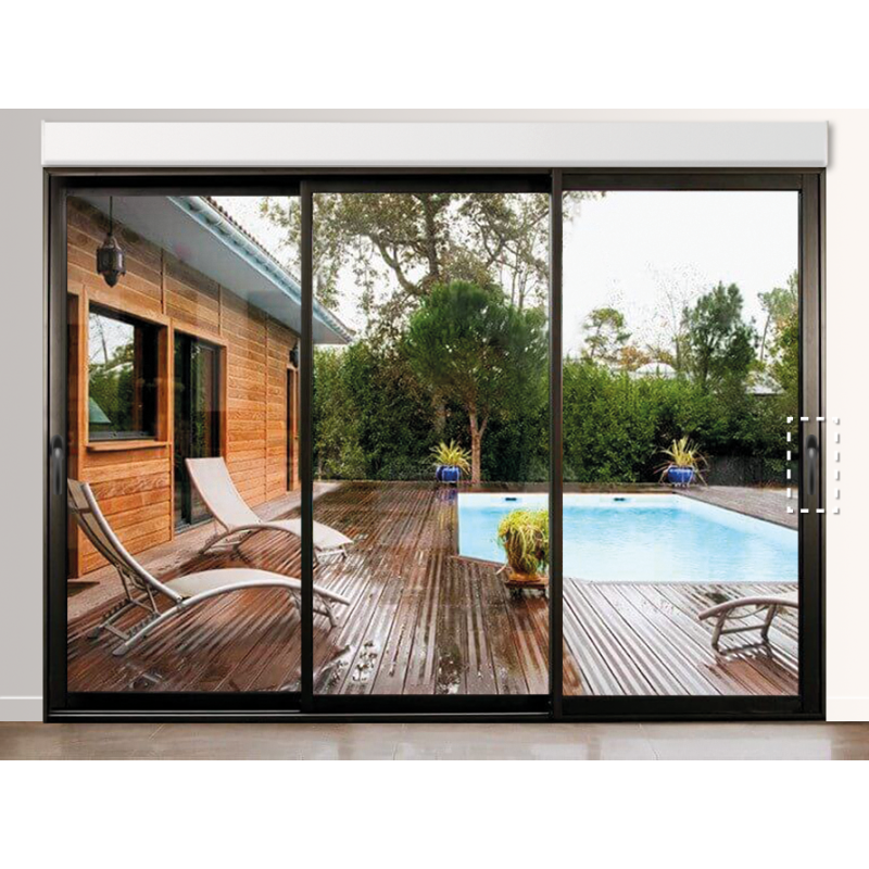La baie coulissante 3 vantaux (ouvrant principale à droite) avec volet roulant intégré alu PROFILS SYSTÈMES d'Usine-Online est la meilleure du marché, elle réunit un nombre important des caractéristiques d'une baie coulissante de haute qualité. La baie coulissante 3 vantaux avec volet roulant intégré PROFILS SYSTÈMES d'Usine-Online est un bon compromis entre le prix et les propriétés que doivent satisfaire aujourd'hui une baie coulissantes aluminium. Usine-Online vous propose une palette de plusieurs coloris en mono-coloration ou bicoloration (intérieur blanc) pour répondre aux tendances de décoration actuelles. La baie coulissante aluminium 3 vantaux avec volet roulant intégré PROFILS SYSTÈMES peut se configurer individuellement à un bon prix dans le configurateur.