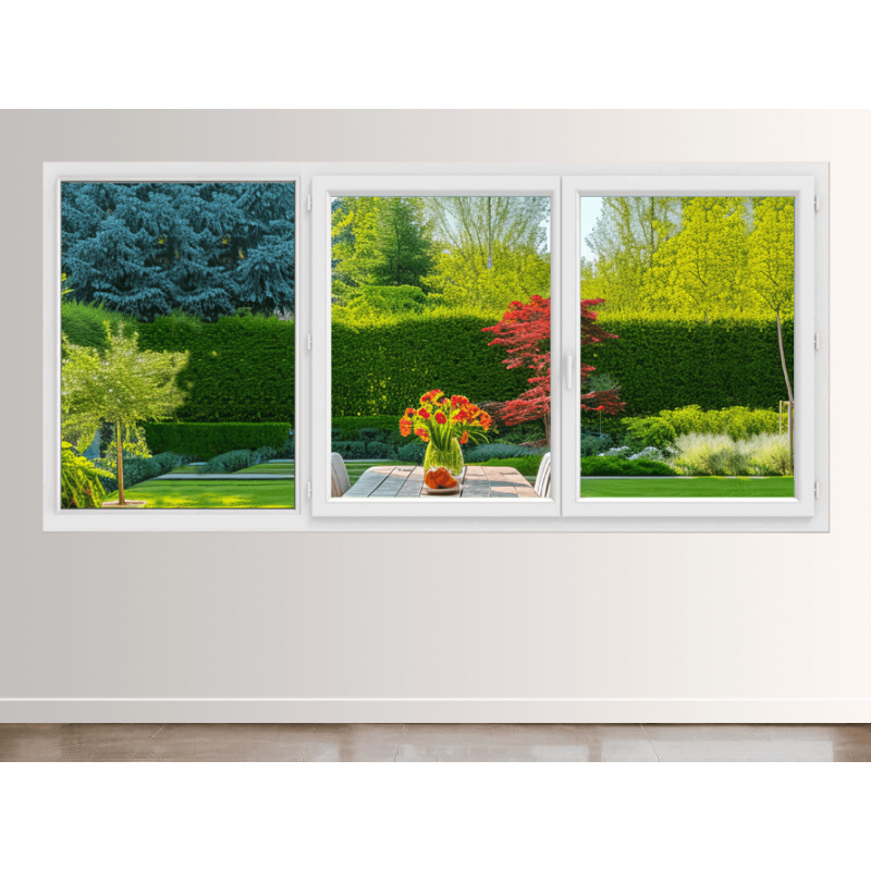 La fenêtre pvc 3 Vantaux (2 ouvrants + 1 fixe à gauche) de Usine-Online est la meilleure du marché, elle réunit un nombre important des caractéristiques d'une fenêtre pvc de haute qualité. La fenêtre pvc 3 Vantaux (2 ouvrants + 1 fixe à gauche) de Usine-Online est un bon compromis entre le prix et les propriétés que doivent satisfaire aujourd'hui une fenêtre pvc. La fenêtre pvc 3 Vantaux (2 ouvrants + 1 fixe à gauche) peut se configurer individuellement à un bon prix dans le configurateur de fenêtre.
