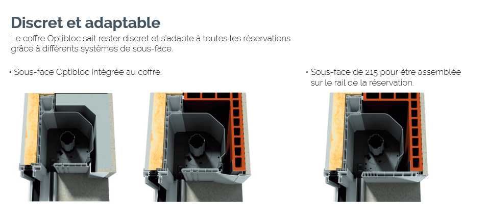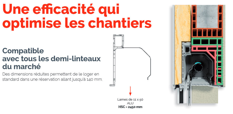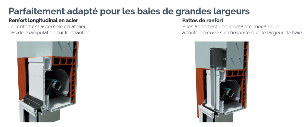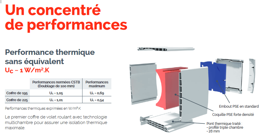 Hauteur coffre intérieur 195 mm NON COMPRISE dans la hauteur de la menuiserie
