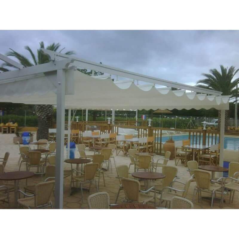 La pergola à toile rétractable UO Plus Vélum manuelle 06 tp4 d’usine-online vous permet de profiter de votre terrasse même lorsque le vent se lève grâce à la structure rigide en aluminium extrudé. Vous ouvrez votre toile pour moduler l’ombrage désiré sur votre terrasse au fil de la journée à l'aide d'une corde et d'une poulie.