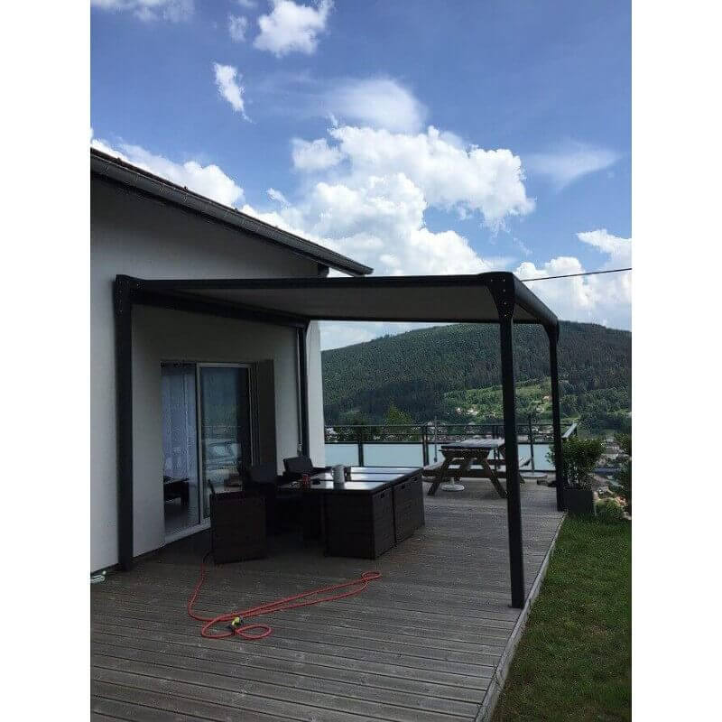 Montée en janvier 2017, la pergola toile enroulable à passée un premier test, les intempéries et tempêtes d'hiver, RAS! Ensuite nous étions agréablement surpris de la protection solaire, nous l'avons choisie en toile gris anthracite, cette toile est de qualité et très efficace contre la chaleur et soleil! Le moteur solaire de la pergola toile enroulable fonctionne très bien.