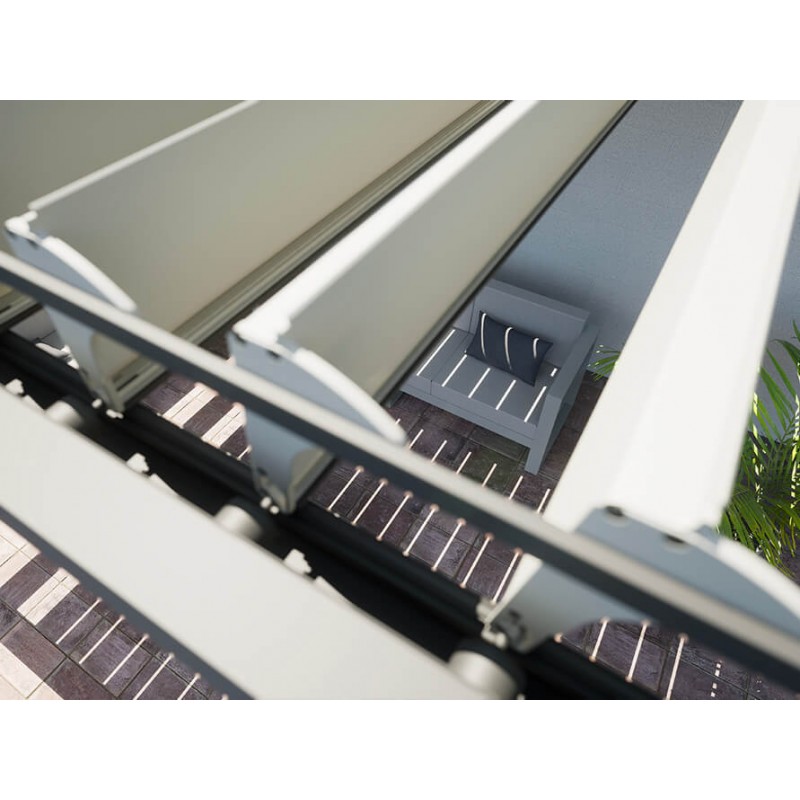 Pergola Bioclimatique Aluminium S3 Adossée Lames Orientables Perpendiculaires Électrique (Motorisation Vérin) Sur Mesure -
