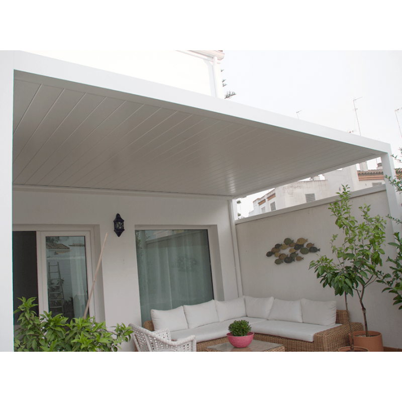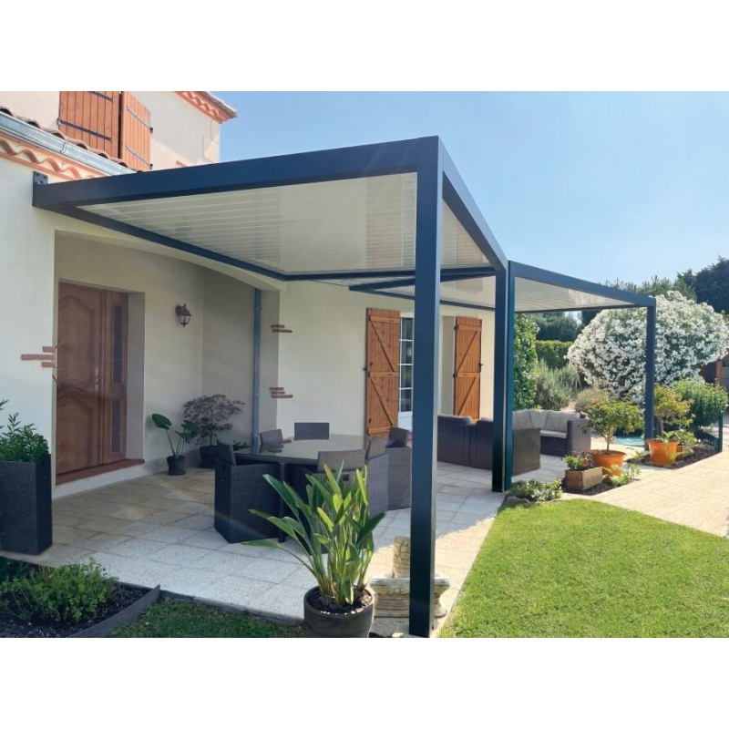 La pergola bioclimatique à lames orientables perpendiculaires S3 adossée d’Usine-Online est la meilleure du marché, elle réunit un nombre important des caractéristiques d'une pergola bioclimatique de haute qualité. La pergola bioclimatique à lames orientables d’Usine-Online est un bon compromis entre le prix et les propriétés que doivent satisfaire aujourd'hui une pergola bioclimatique. Usine-Online vous propose 2 coloris en prix standard en mono coloration ou en bi coloration pour répondre aux tendances de décoration actuelles. La pergola bioclimatique à lames orientables perpendiculaires S3 brise soleil peut se configurer individuellement à un bon prix dans le configurateur de pergola bioclimatique.