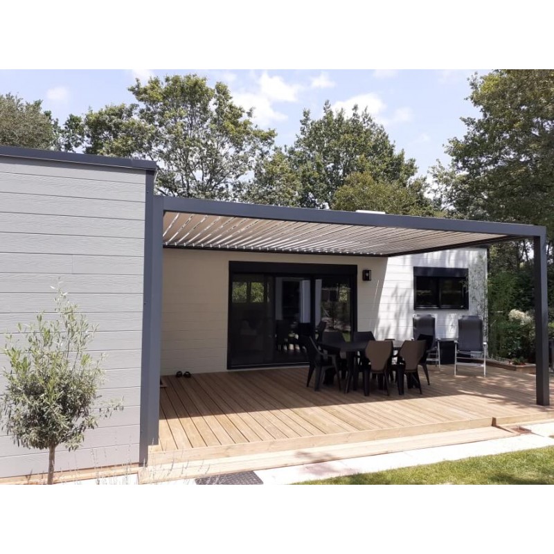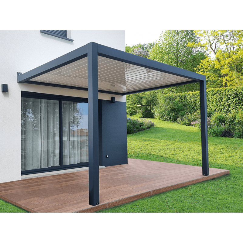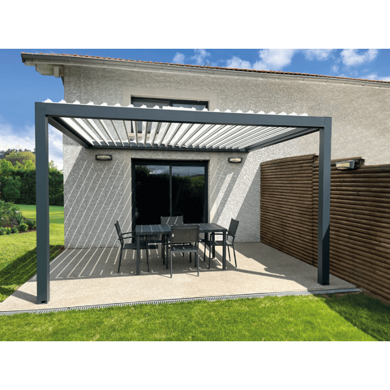 Pergola bioclimatique 4.12x3.4m lames perpendiculaires
