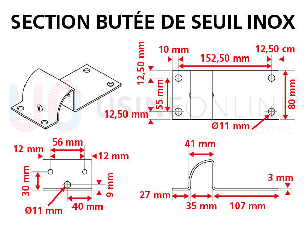 Largeur Mini : 800 mm ; Maxi : 1500 mm