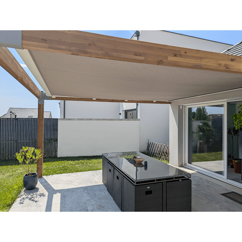 EX : Une toile noire ou gris foncé vous permettra de conserver une bonne fraîcheur. En revanche, une toile blanche ou beige, laissera passer plus d’UV à travers la toile. La chaleur va donc traverser la toile et augmenter la température. Pour donner un ordre d’idée, une toile blanche ou beige bloque 90% des UV responsables de la chaleur alors qu'une noire ou gris foncé en bloque 100%. Mais lorsque le soleil tape très fort sur votre terrasse, 10% de blocage en plus peu faire une grande différence.