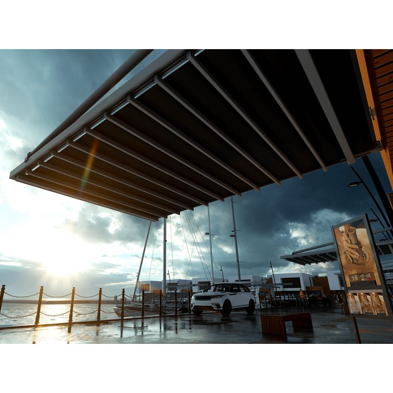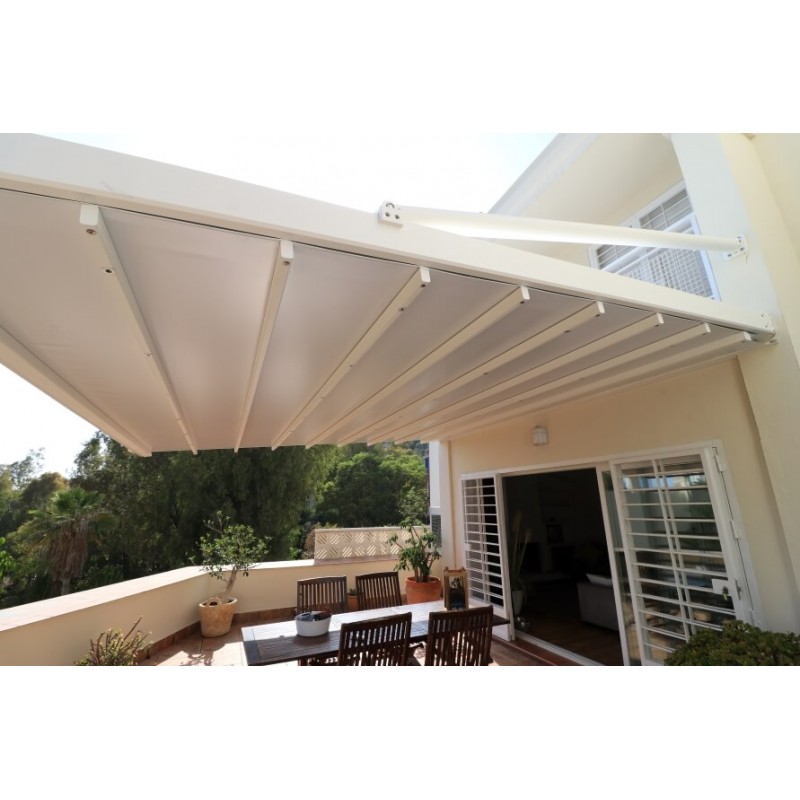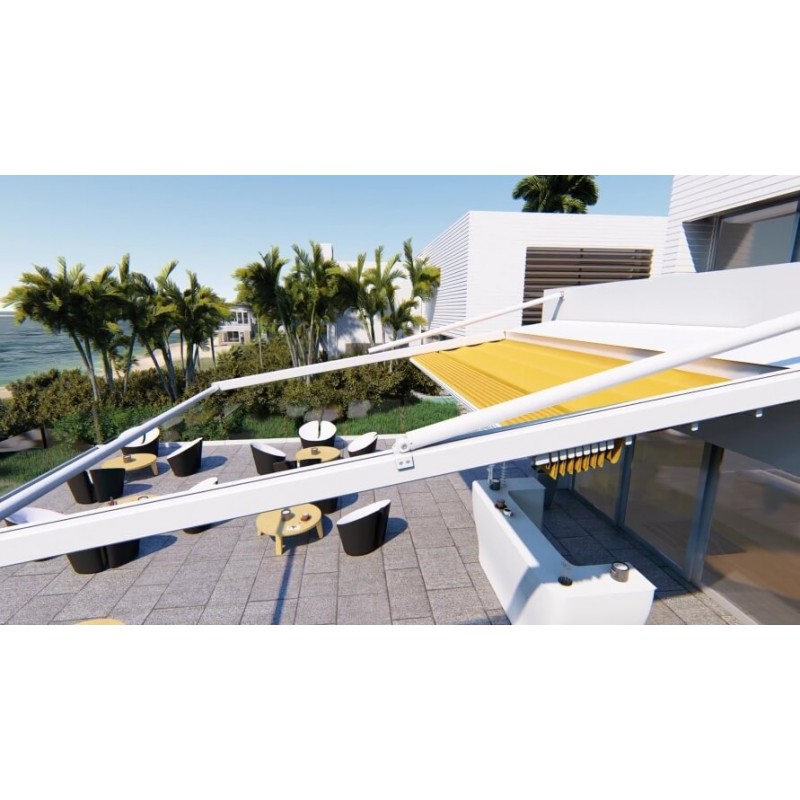 Configurez et Commandez votre Pergola Toile Rétractable S-Luxe Sauleda® Technical Étanche Suspendue (Bras de Supports) Électrique (Télécommande) Sur Mesure *Étape obligatoire