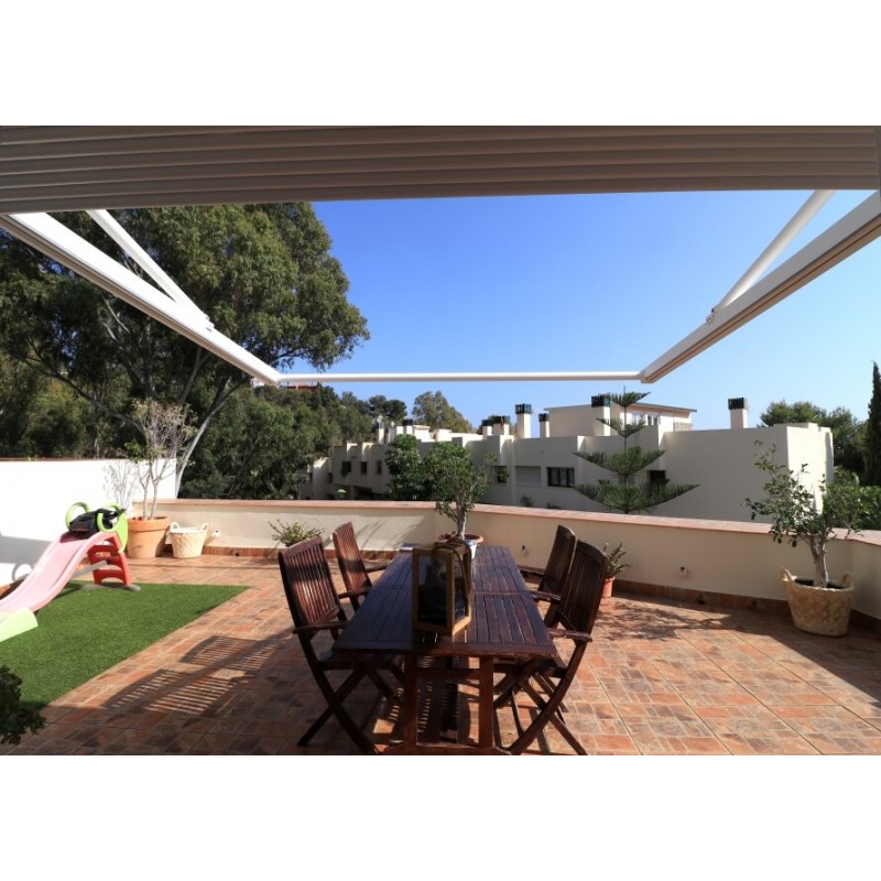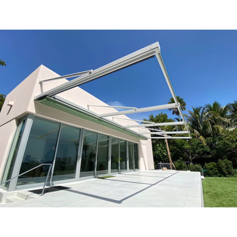 La pergola à toile rétractable S-Luxe Sauleda® Étanche Suspendue (bras de supports) d’Usine-Online est la meilleure du marché, elle réunit un nombre important des caractéristiques d'une pergola à toile rétractable étanche de haute qualité. La pergola à toile rétractable S-Luxe Sauleda® Étanche Suspendue (sans poteaux) d’Usine-Online est un bon compromis entre le prix et les propriétés que doivent satisfaire aujourd'hui une pergola rétractable étanche motorisée. Usine-Online vous propose 14 finitions pour la toile et un choix Ral illimité de coloris pour l'armature afin de répondre aux tendances de décoration actuelles. La pergola à toile rétractable Sauleda® Étanche S-Luxe Suspendue (sans pilliers) peut se configurer individuellement à un bon prix dans le configurateur de pergola à toile rétractable.
