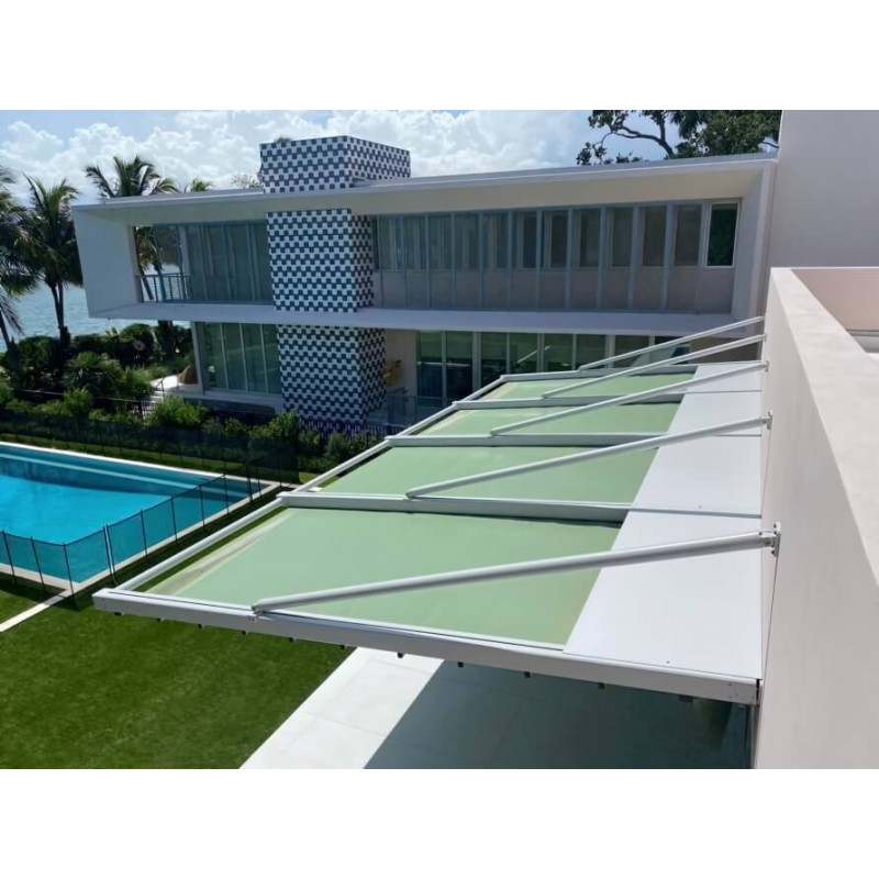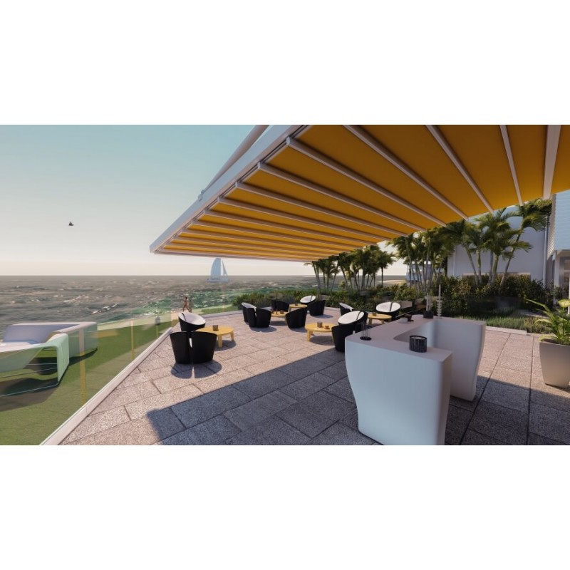 La pergola à toile rétractable S-Luxe Ferrari® Soltis W96 Micro-Perforée Étanche suspendue (bras de supports) d’Usine-Online est la meilleure du marché, elle réunit un nombre important des caractéristiques d'une pergola à toile rétractable étanche de haute qualité. La pergola suspendue (sans poteaux) à toile rétractable S-Luxe Ferrari® Soltis W96 Micro-Perforée Étanche suspendue (sans poteaux) d’Usine-Online est un bon compromis entre le prix et les propriétés que doivent satisfaire aujourd'hui une pergola rétractable étanche motorisée. Usine-Online vous propose 5 finitions pour la toile et un choix Ral illimité de coloris pour l'armature afin de répondre aux tendances de décoration actuelles. La pergola à toile rétractable Ferrari® Soltis W96 Micro-Perforée Étanche S-Luxe suspendue (sans pilliers) peut se configurer individuellement à un bon prix dans le configurateur de pergola à toile rétractable.