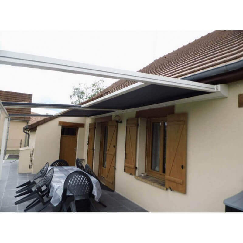 Pergola Toile UO Coulissante & Enroulable Acrylique Adossée Electrique (Télécommande ou Interrupteur) en Aluminium Sur Mesure -