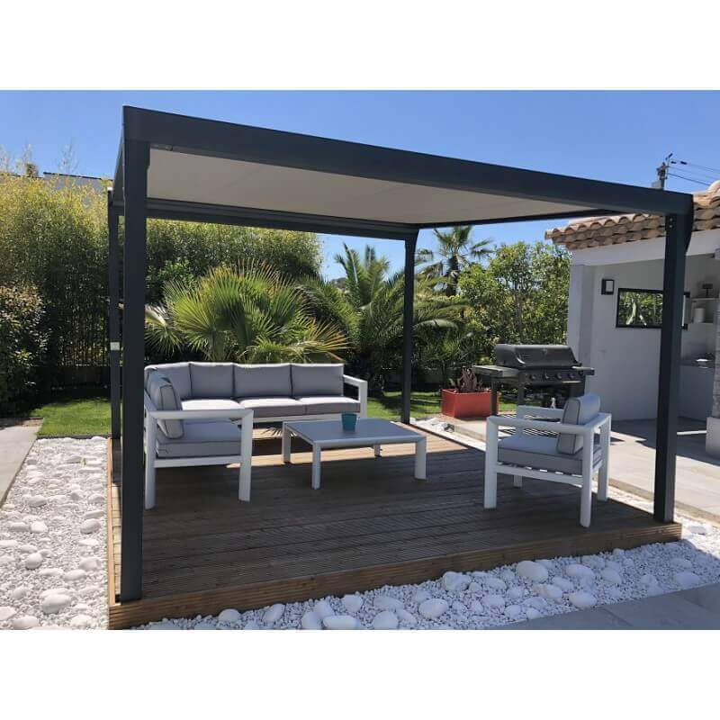 La pergola solaire à toile enroulable auto-portée toile acrylique d’Usine-Online est la meilleure du marché, elle réunit un nombre important des caractéristiques d'une pergola enroulement de haute qualité. La pergola à toile enroulable d’Usine-Online est un bon compromis entre le prix et les propriétés que doivent satisfaire aujourd'hui une pergola à enroulement. Usine-Online vous propose 2 coloris std pour l’armature et 17 coloris de toile teintée masse pour répondre aux tendances de décoration actuelles. La pergola à toile enroulable solaire auto-portée peut se configurer individuellement à un bon prix dans le configurateur de pergola à toile enroulable solaire auto-portée toile acrylique.