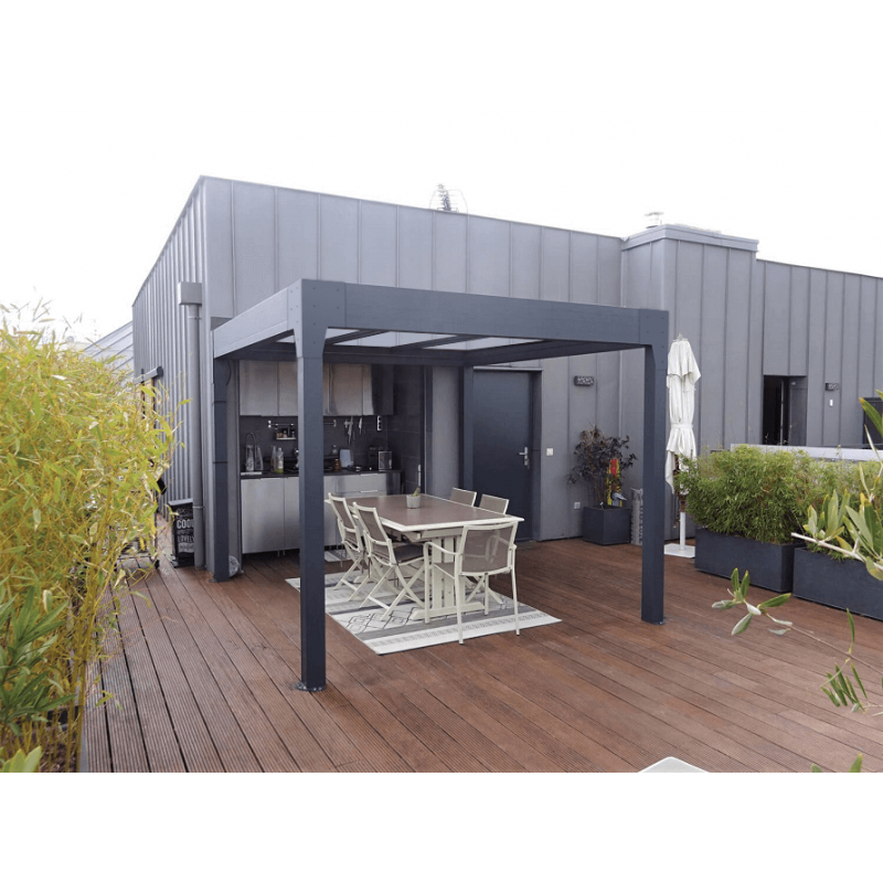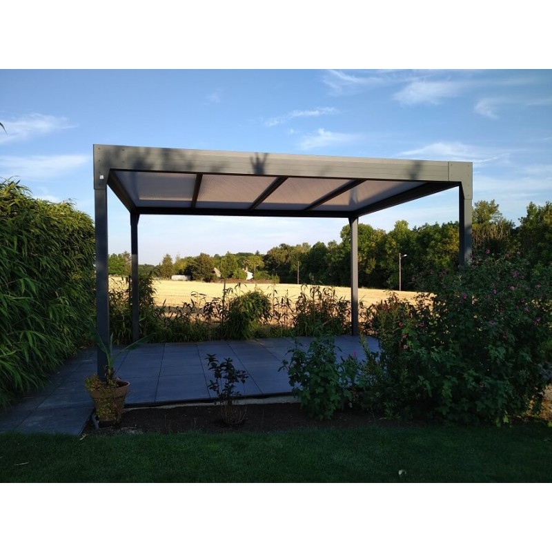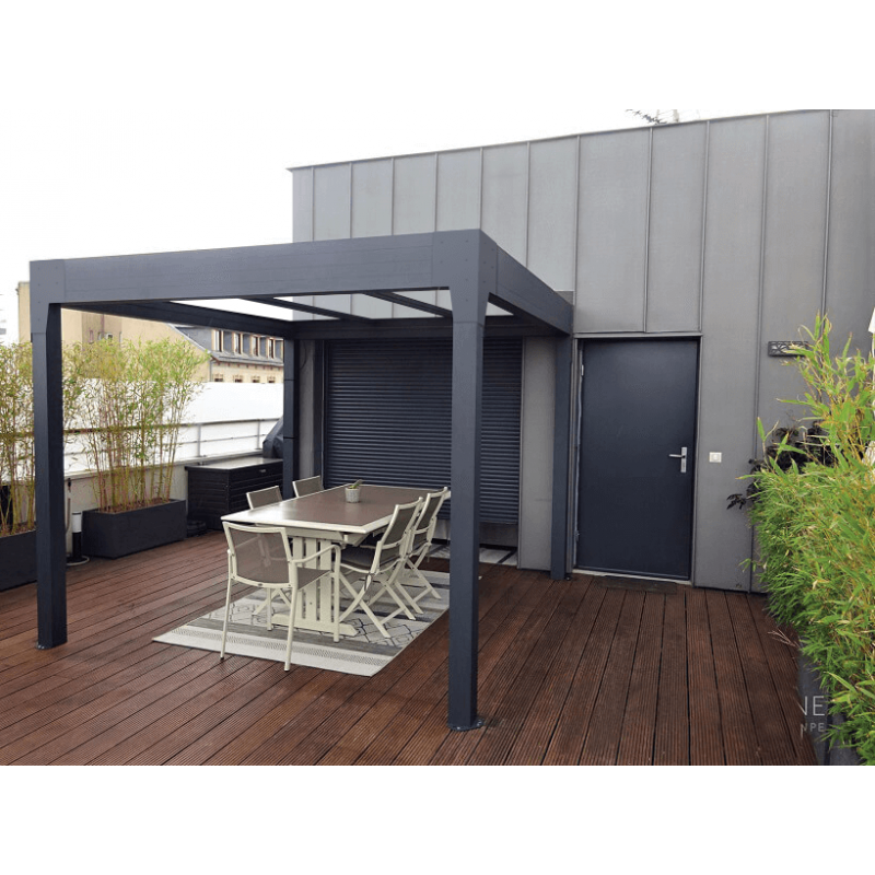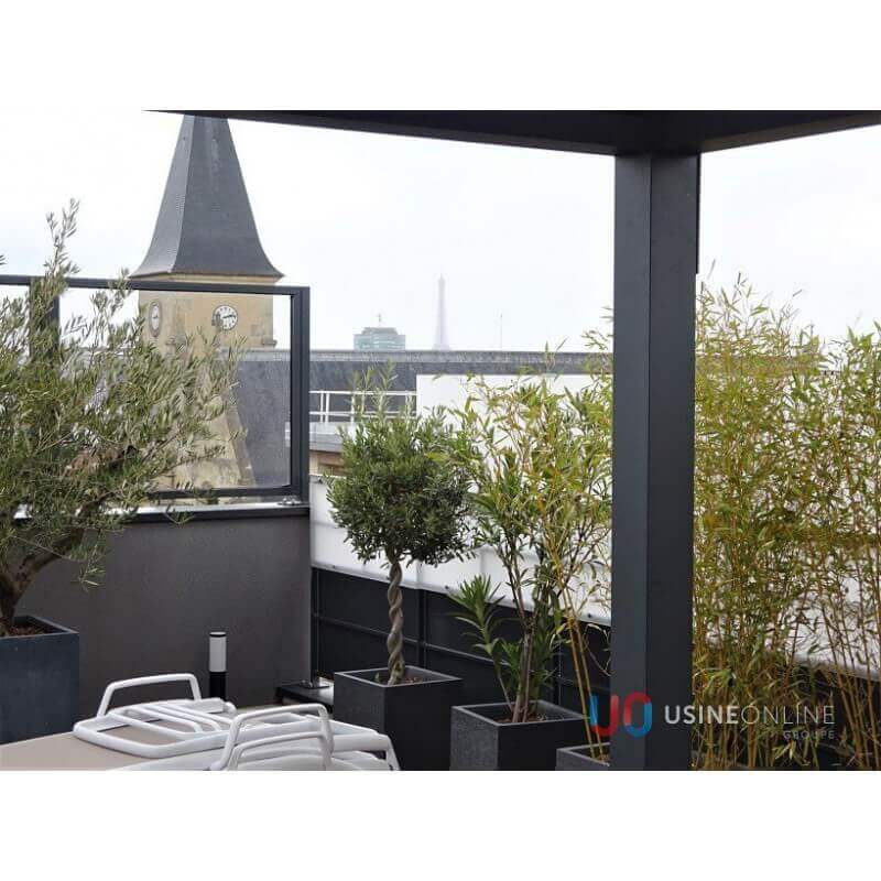 La structure pergola aluminium auto-portée toit plat d’usine-online est d’une grande robustesse et à une excellente durée de vie, la structure associe les propriétés d’un carport aluminium pouvant recevoir des plaques de 32 mm d'épaisseur maintenues par les parcloses. La structure pergola aluminium auto-portée toit plat d’usine-online est conçue pour vous protéger du soleil et des intempéries et vous permet de profiter de votre terrasse même lorsque le vent se lève grâce à la structure rigide en aluminium extrudé. Le toit plat avec une inclinaison des plaques et une descente intégrée aux piliers permettent d’évacuer l’eau facilement en cas de pluie. La structure pergola aluminium auto-portée toit plat d’usine-online au toit fixe à 0° et aux lignes fines et épurées apportera une note résolument contemporaine à votre extérieur.
