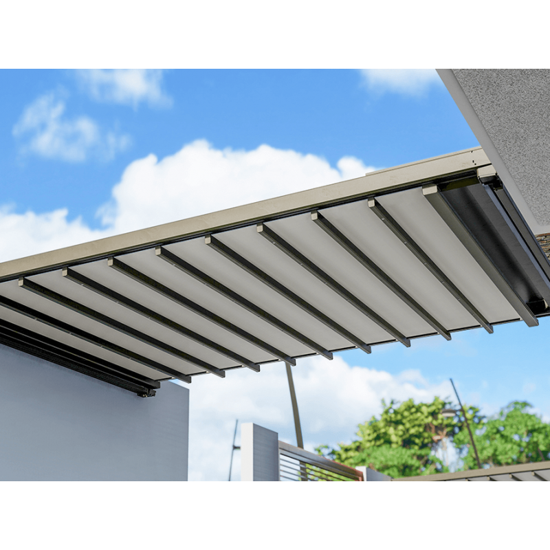 Configurez et Commandez votre Pergola Toile Rétractable S-Luxe Ferrari® Soltis W96 Micro-Perforée Étanche Entre 2 Murs Électrique (Télécommande) Sur Mesure *Étape obligatoire