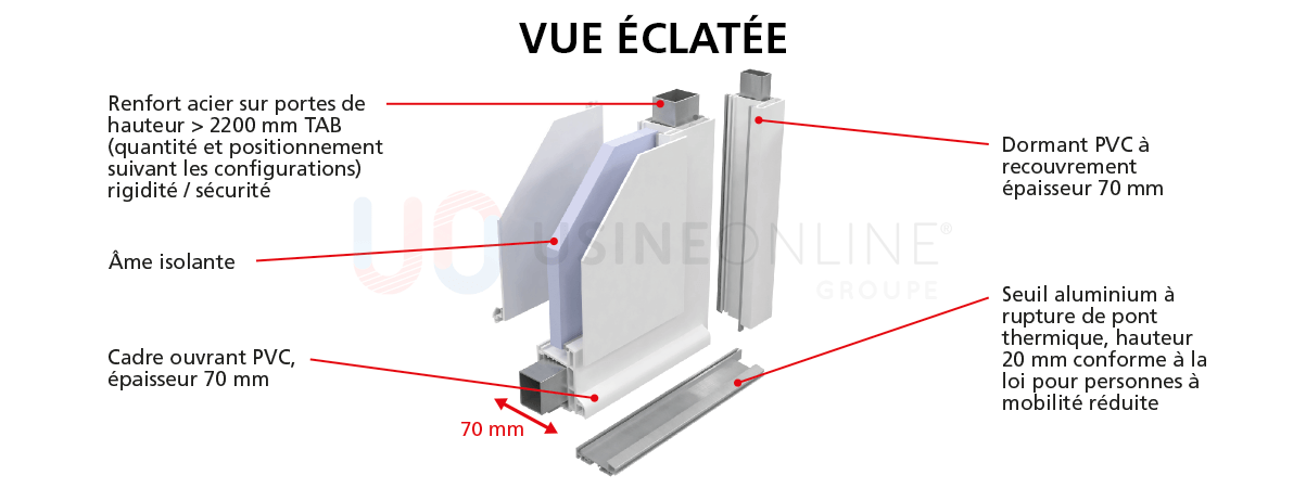 COUPES TECHNIQUES ET PLAN RÉSERVATION PORTE PVC