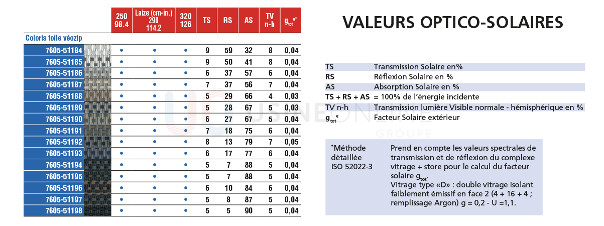 • Transparence idéale avec un coefficient d’ouverture de 5%