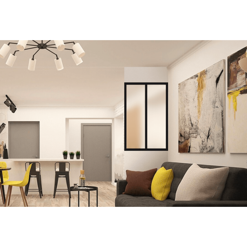 Configurez et Commandez votre Verrière d'Intérieur Aluminium 2 Vitrages Dépolis Haut de Gamme Hauteur 1230 x Largeur 710 mm Noir RAL 9005 Style Atelier *Étape obligatoire